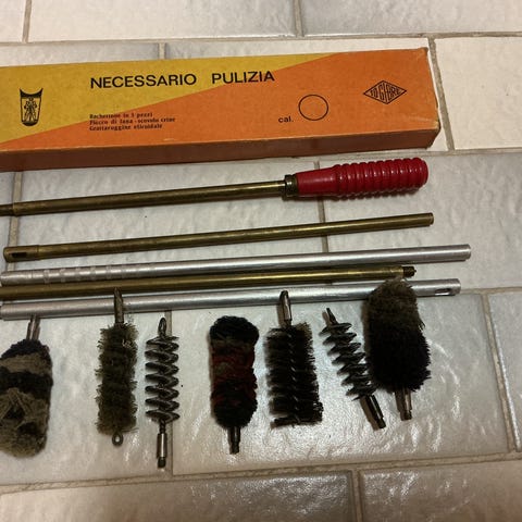 Käyttämätön haulikonpiipun puhdistusharjasarja, 12 kaliberin piipulle.
