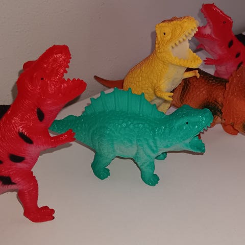 Minikokoiset dinosaurusfiguurit suklaamunasta 2 kpl, kokonaispituus n. 6 cm.