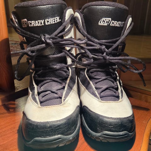 CrazyCreek -merkkiset lumilautakengät kokoa 36. Olleet vähällä käytöllä. Todella siistit ja täysin ehjät. Kiristys pikalukolla ja nauhoilla. Pohjallisen pituus 22,5cm (katso kuva).