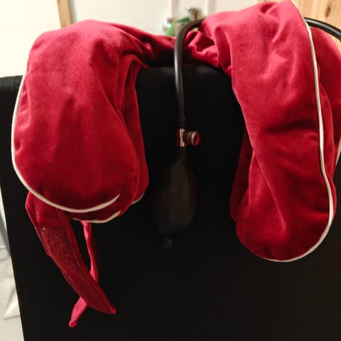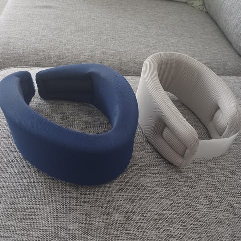 4 kpl samanlaisia niskatukia,niskatyynyjä. Ehjiä,puhallettavat ,pakattavissa pieneen tilaan,päälliset pehmeätä froteeta,irrotettavat,pestävissä.ommeltu myös silkkinauhat,pysyy paikoillaan ja antaa paremman tuen .Kaikki kerralla yhteensä 8 €.