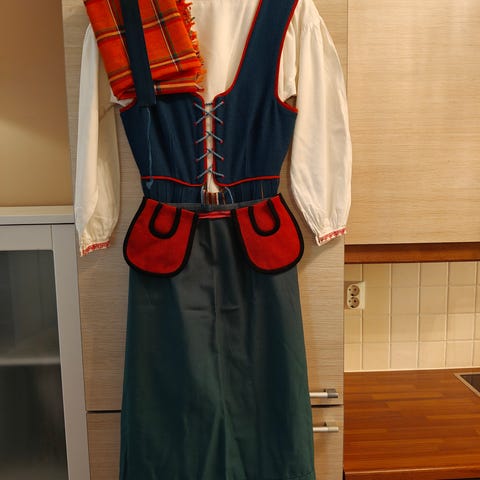 Myydään hyväkuntoinen Oulun seudun kansallispuku; hame, essu, liivi ja paita. Liivistä puuttuu yksi hakanen (kts. kuva)
