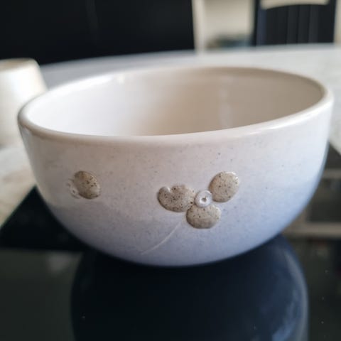 Valkoinen kukanmallinen posliini kippo. Korkeus 7 cm ja halkaisija 8 cm. En tiedä onko tähän mahdollisesti kuulunut joku lasinen sisäosa, tällöin voisi olla tuikkuastia. Toimii näköjään näinkin mm. tuikkuastiana. Ehjä ja hyväkuntoinen.