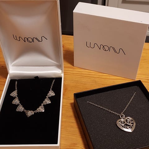 Myydään uuden veroiset Lumoava Serenadi kaulakoru ja korvakorut. Hopeaa. Hinta yhteensä 80€.