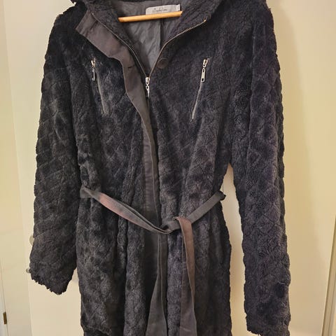 Ihastuttava, musta Saint Tropezin tekoturkistakki, koko L, kunnossa ei moitittavaa.