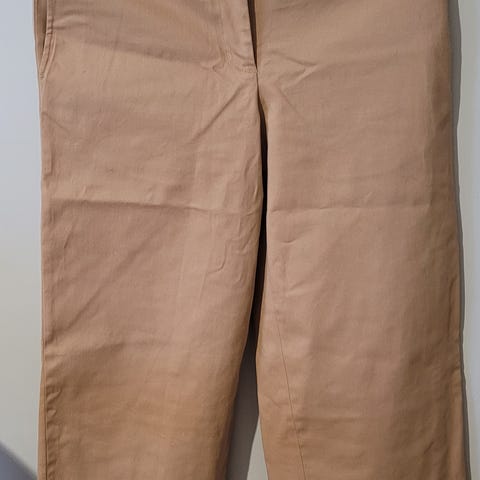 Beigen väriset Marimekon housut. Mallin nimi on Annalina Solid. 59% puuvillaa, 41% polyamidia.