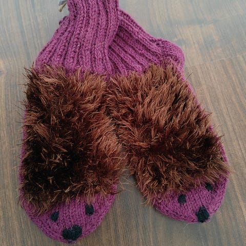 Käyttämättä jääneet siilivillasukat vastasyntyneelle. Pohjan pituus 10cm.