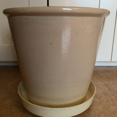 Myydään harmaa metallinhohtoinen keraaminen kukkaruukku
