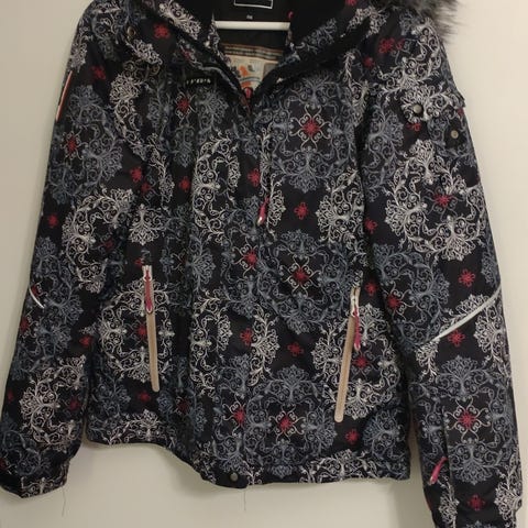 Kuva beige toppatakki naiselle. Koko M . Kertaalleen ollut päällä. Takin paljousesta myydään pois.