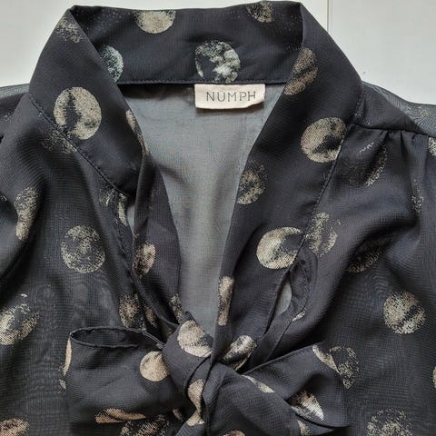 Nümphin viskoosipusero koko 38. V-aukko, pitkät hihat kuminauhoilla. Kai-kai 52 cm, olka-helma 62 cm. Hillitty kuosi vaaleanpunaista, vihreää ja limen vihreää. Materiaali kivasti vähän joustavaa 100 % viskoosia. Hyvä yhdistettävä esim.neuletakkien kanssa. Moitteeton kunto. Postitus onnistuu 8,9 e tai Toridiilillä.