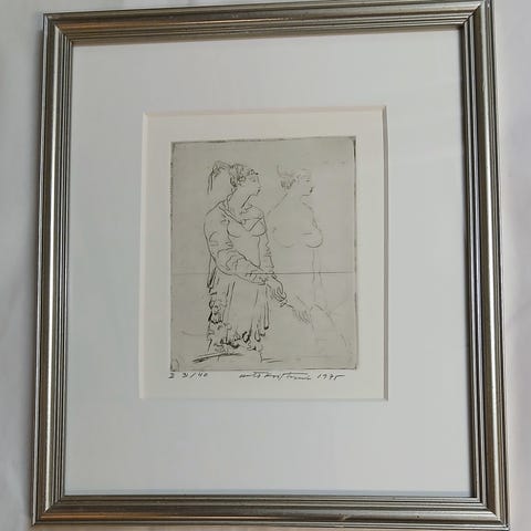 Akvarellimaalaus / pastellityö. Signeerattu 1951.