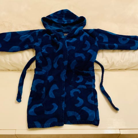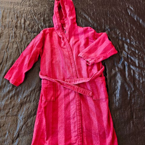 Ristomatti Ratian malliston lasten kylpytakki, koko 120. Kiinteät vyönauhat, huppu. Vyössä hieman enemmän käytön jälkiä. Huomioithan että vaate on käytetty, en ole syynännyt suurennuslasilla mutta kerron jos olen huomannut jotain mainittavaa.