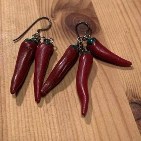 Riipuksessa ikoninen unikko kuvio molemmin puolin