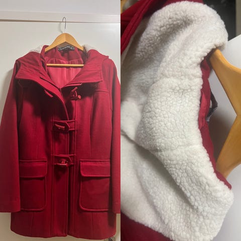 Laadukas 100% villaa oleva naisten duffelitakki, merkki elegance. Käytetty pesulassa. Väri cameli. Kunto erinomainen. Koko 38, malliltaan väljä, kevyet olkatoppaukset.