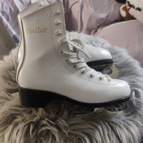 Ehjät ja siistit luistimet. Käytön jälkeä näkyy. Mukaan saa teräsuojat.