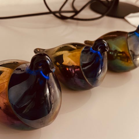 12,5cm korkea, täysin ehjä. Tarra pyrstössä tallella. Antiikkia.