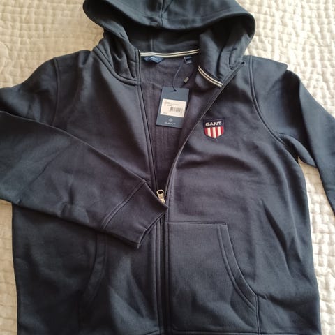 Myydään uusi, käyttämätön Gantin harmaa collegetakki, edessä vetoketju ja logo, taskut, koko XL, pituus 75cm, kainalo-kainalo-mitta 60cm, 100% puuvillaa, nouto tai postitus 8,90€.