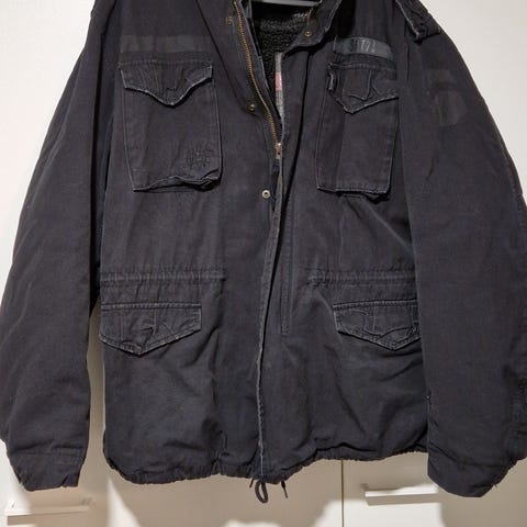 Oliivinvihreä surplus M65 irtovuoritakki. Kulutettu ja kulunut. Vetoketjut ja kaikki nepparit kunnossa. Koko M mutta reilu mitotus. Irtovuorta käytetty ehkä 5 kertaa(todella lämmin) Vyötäröllä kiristysnyörit ja huppu kauluksen sisällä jemmassa. Vuorta hieman parsittu toisesta kainalosta, näkyy kuvassa.