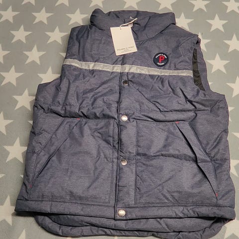 Hyväkuntoinen toppaliivi. Heijastimet edessä ja takana.