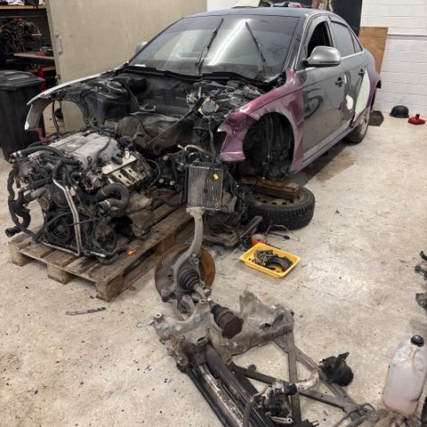 Löytyy koko 01e voimansiirtoja, hyvä päivitys 1.8t koneen perään jos vakio ei enään kestä. Laatikoita bensan sekä dieselin välityksillä. muutamakin kokonainen moottori ja niiden osia,jotain viri osiakin, isompaa putkistoa, 18” vanteet, HP2 jarrut eteen ( hyvä päivitys pikkukoneisiin). Jäähdytetyt takajarrut, S4 puskureita eteen ja taakse (kuvien tutkilla oleva takapuskuri myyty), Kysymällä selviää parhaiten löytyykö vai ei!