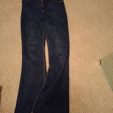 Lahkeet ovat pitkät ja jonkin verran rispaantuneet, kuten kuvista näkyy. Sisäpituus on n. 82 cm (haara-lahkeensuu).