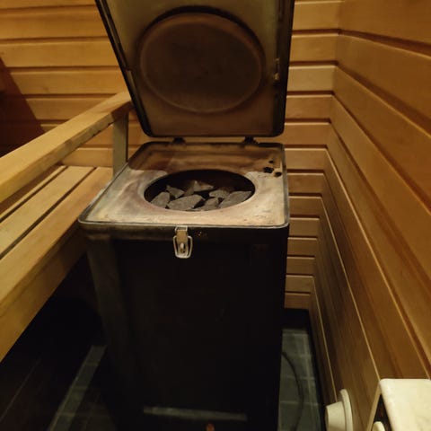 Sauna eorox Oy Taso saunan kiuas 6 kW leveys 550 korkeus 800 mm lämmitetty muutaman kerran vieressä puulämmitteinen kiuas