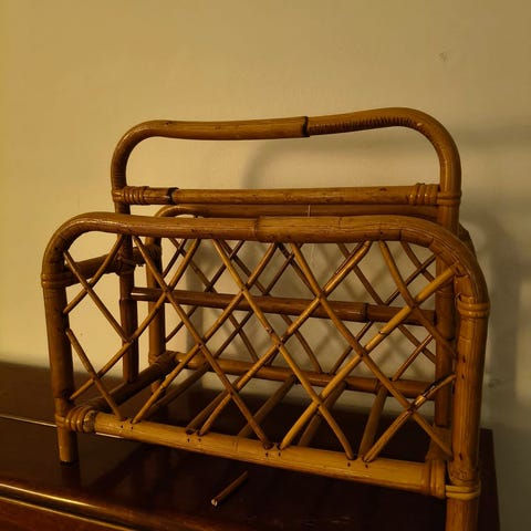 Iso rottinki leipäkori tai muu säilytyskori. Ulkomitat n. 30 x 36 cm, pohja 25 x 30 cm, korkeus 7 cm.