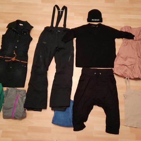 Kuvissa tiedot. Kaksi juhlavaa toppia ja pehmoinen kauluspaita. Kauluspaita hieman isompaa kokoa kuin topit.