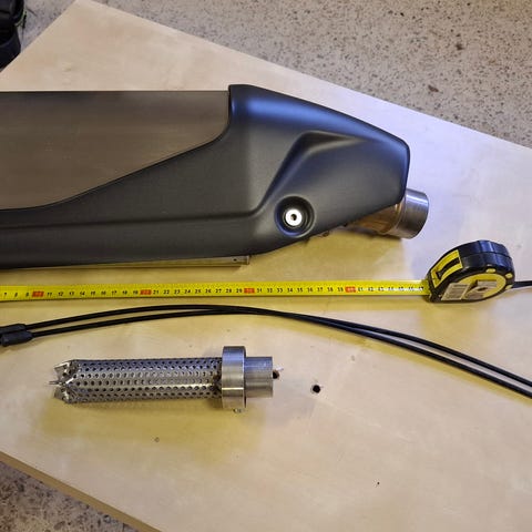 Käytetty äänenvaimennin, sisältää ”pakokaasujarrun”. Ei ole jumissa vaan liikkuu. Vaimentimessa ei ole lommoja, mutta vaatii kiillotuksen jos haluaa huippusiistin.