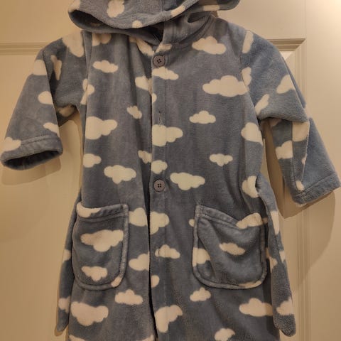 Myydään hyväkuntoinen pehmeä aamutakki koko 86/92. Hajusteeton pesu, ei lemmikkejä. Hp.5e