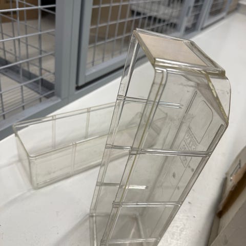 Laatikollinen pitkiä hyllykoukkuja