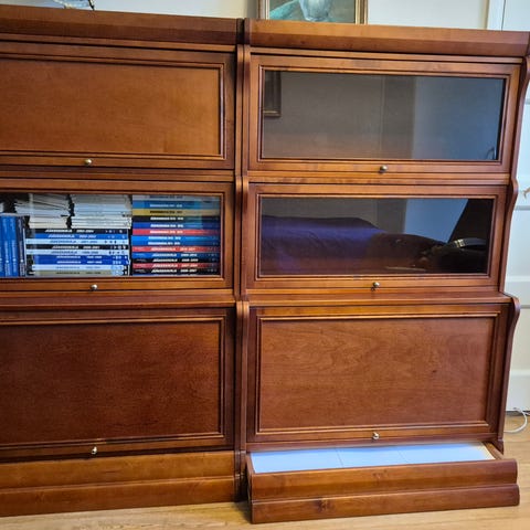 Billnäsin laadukas kotimainen moduuli kirjahylly. Jokainen "laatikko" irtonainen, joten helppo kuljettaa. Alhaalla sokkelit, kaksi mappihyllyä, toisessa irroitettava välitaso. Ylempänä kahdeksan lasivitriiniä joihin mahtuu esim. normaalikokoinen kirja. Mahdollisuus kuljetukseen kauemmaskin lisämaksusta.