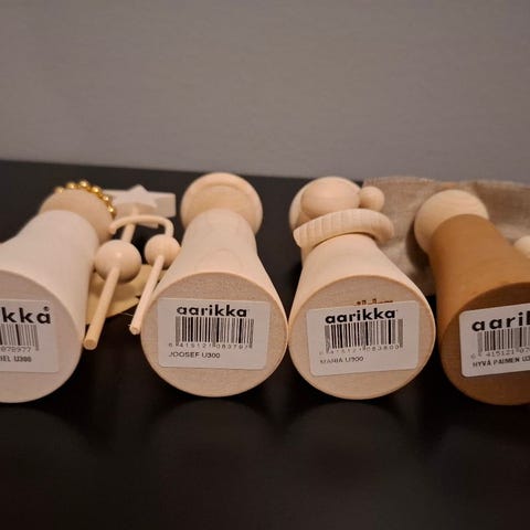 Ostan hyväkuntoisen Aarikan vanhan joulukoristeen ’Hyvä paimen’, joka on kuvassa vasemmalla. Patsasta on voitu myydä myös nimellä Joosef tai Josef. Etsimäni patsaan korkeus on noin 33 cm.