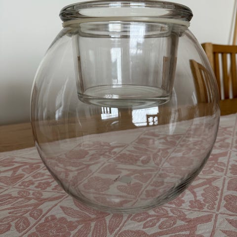 Erinomainen kunto. Sisemmän lasin saa pois ja halutessaan näiden kahden lasin väliin koristeita.