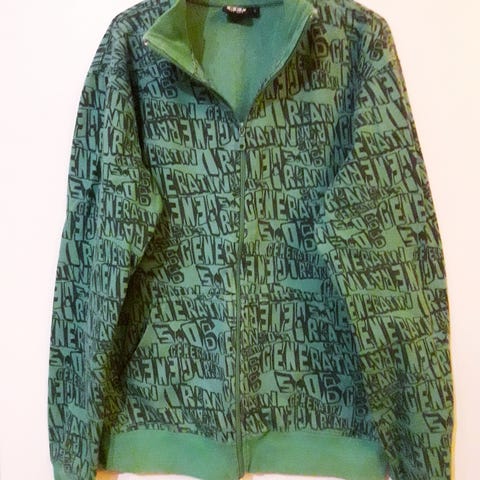 Puman vihreä collegetakki, vähä kulumaa pinnassa. Ensimmäisessä kuvassa näkyy oikea väri parhaiten.
