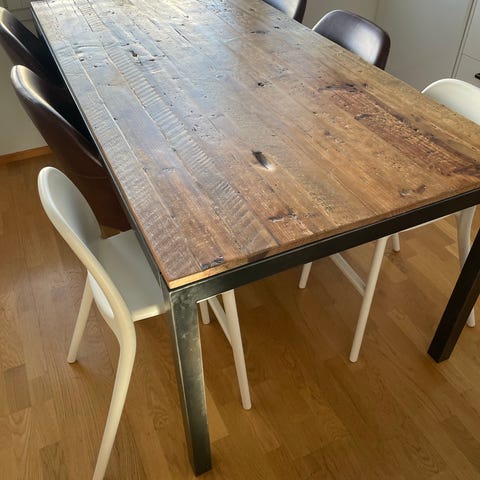 Myydään hyväkuntoinen, tyylikäs, tukeva ja Jalavapuinen ruokapöytä + 6 keinonahkapäällysteistä tuolia (ovh:1300€) . Pöydän pinnassa on joissakin kohti pieniä naarmuja,tuolit siistejä ja kuin uusia . Tämä kokonaisuus löytyy Järvenpäästä:). Pelkät tuolit 300e.