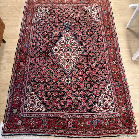 Tästä käsin kudottu tyylikäs villamatto uuteen kotiin. Maahantuotu Iranista 90-luvulla. Loistavassa kunnossa ikäisekseen ja värit edelleen kirkkaat. Mitat 3.2x2.2m. Nouto lähtökohtaisesti Töölöstä. Saattaa kulkeutua Helsinki-Mäntsälä välillä jos sopivasti sattuu.