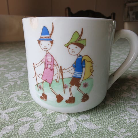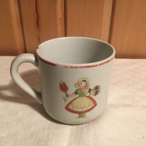 Uudenveroinen Arabian lasten posliinimuki kahdella korvalla.