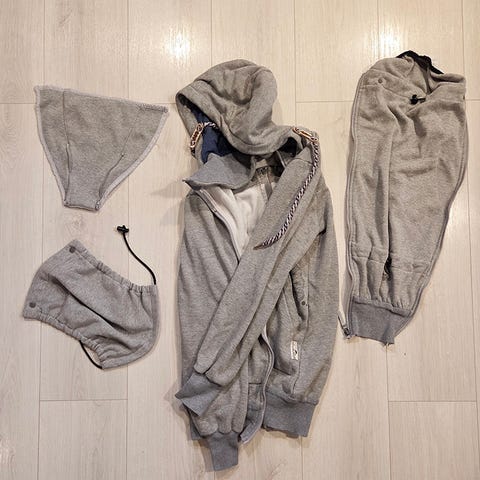 Lämmin harmaa huppari.