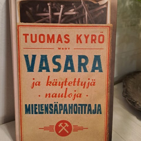 Kuvassa näkyvä Tuomas Kyrön vasara ja käytettyjä nauloja Mielensäpahoittaja kovakantinen kirja. Kirja on lukematon. Nouto tai posti. En tee toridiiliä.
