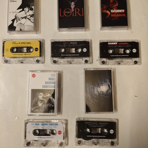 Myynnissä J. Karjalainen Ja Mustat Lasit kasetit.