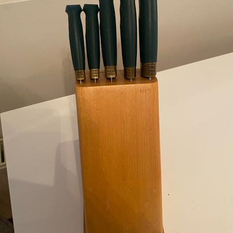 2 veistä, ruostumatonta terästä (stainless steel, fully forged), lahjapakkauksessa. Ehkä jopa käyttämättömät kun ei käytön jälkiä näy.