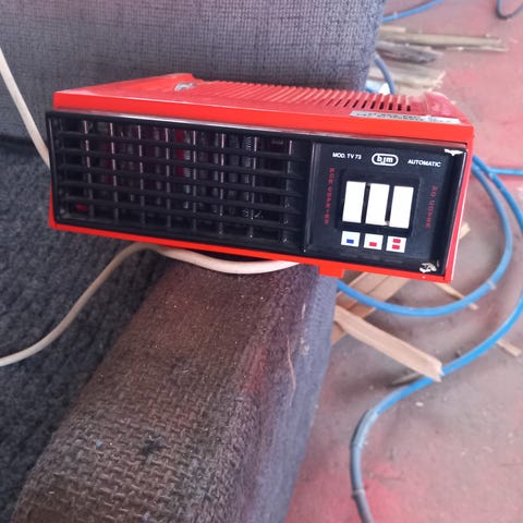 Tämä kytketään patteri lämminvesikiertoon ja moottori puhaltaa lämmintä ilmaa ympäriinsä. Esimerkiksi talliin hyvä, saa nopesti lämpöä tarvittaessa, eikä tietekään tule käryjä. Ollut omassa käytössä ja toimii vaikka joku lommo onkin. Tällä saa vaikka n. 100 neliön tilan nopeasti lämpimäksi.Koko 75x75x25