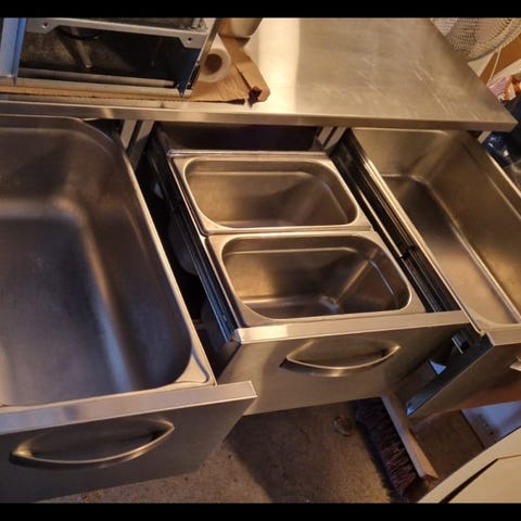 Pohjakartiolla, pumppukärryllä siirreltävä.