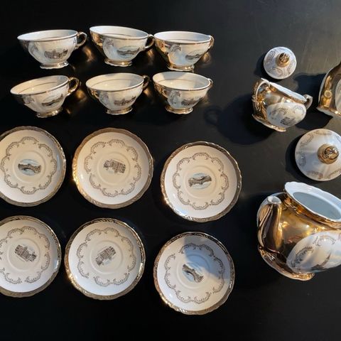 Myydään edullisesti lähes käyttämätön Bavaria Germany kahvi astiasto 10heng. Settiin sisältyy 10 kaunista maalattua ja kullattua kahvi/tee kuppia, kupeille pienemmät lautaset joissa pelkät kultaukset ja lisäksi vielä suuremmat lautaset joissa kultauksuen lisäksi samoja kuvia kuin kupeissa. Astiasto on ilmeisesti ollut 12 hengelle mutta kaksi kuppia on hävinnyt tai särkynyt. Astiasto niin laaja että kuvia vain osasta löytyy muutama kulho/kippo/kannu joiden käyttö tarkoitusta en tiedä 😂