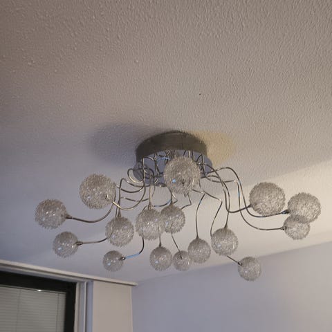 Valaisimen läpimitta 48 cm ja korkeus 19 cm. Mukana tulevilla vaijereilla valaisimen alareunan saa maksimissaan 150 cm alas katosta. Valaisimen alaosassa opaalimuovi tasoittamassa valoa. Valaisimessa paikat neljälle E27 kantaiselle lampulle. Mukana tulee 4 kpl LED lamppua jotka toimivat myös himmentimen kanssa.