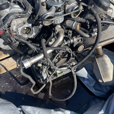 Moottori osiksi purettu, Moottoria vaivasi tyyppivika eli 1 sylinteriputki painunut alaspäin