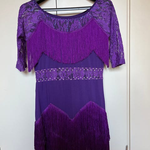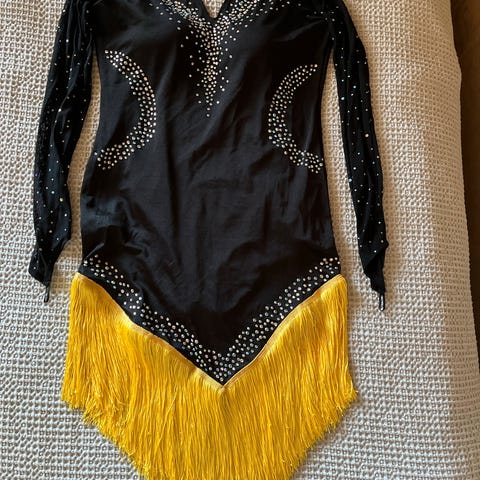 Myydän käyttämätön tanssimekko. Kainiisti laskeutiva joustava materiaali. Strassattu Nouto tai postitus. Tango, paso doble, tanssi
