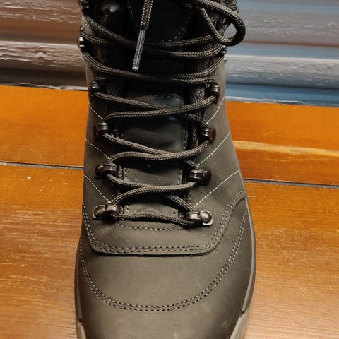 Aika kapealestiset nauhalliset mustat talvikengät kokoa 41. Olleet käytössä koululaisella muiden talvikenkien ohella. Nämä on goretex-ominaisuuden lisäksi aivan superlämpimät kunnollisen karvavuorin ansiosta. Hyvät pohjat ja päällikankaat hyvässä kunnossa.