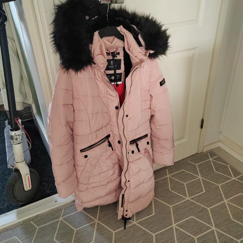 Myydään Navahoon pitkä ja paksu talvitakki hupulla jossa karvareunus.