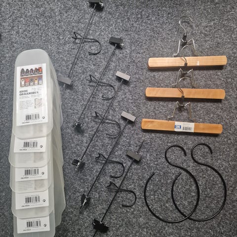 Myydään vaatekaapin sisälle kiinnitettävä teline housuja varten. Kiinnitys neljällä ruuvilla. Painava ja laadukas, siistissä kunnossa.